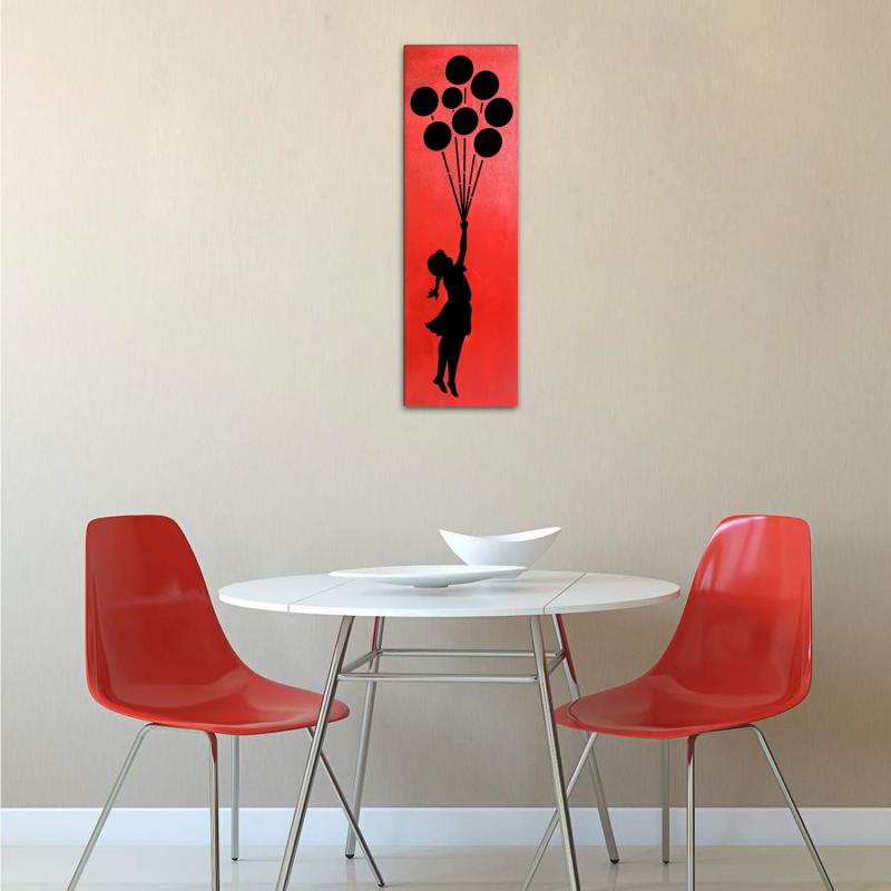 | Balonlu Kız 2 Katlı Ahşap Oyma Tablo Siyah & Kırmızı |