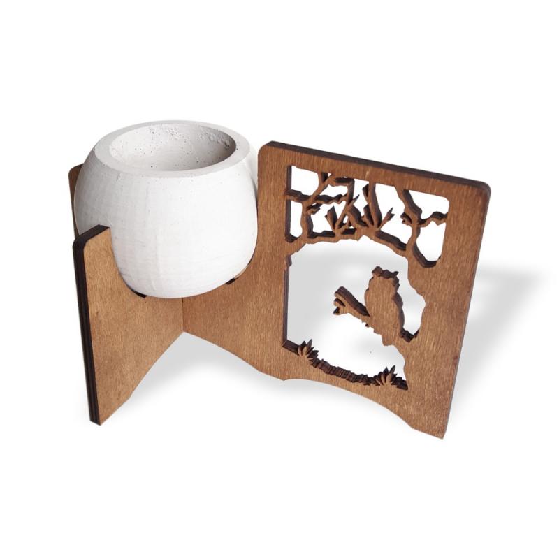 Baykuş ve Orman Figürlü Beton Saksılı Ahşap Stand HK1667