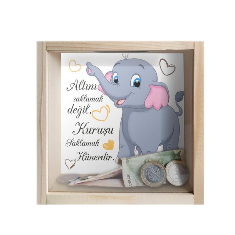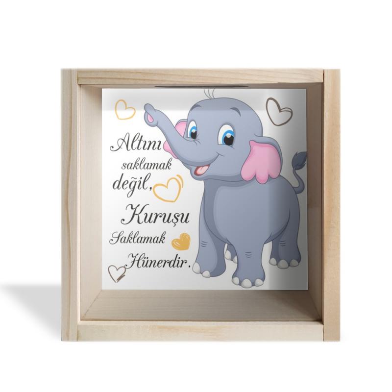 Camlı Ahşap Kumbara Filli Ham Ahşap HK0665-HM