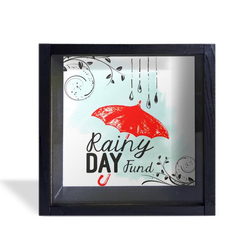Camlı Ahşap Kumbara Kırmızı Şemsiyeli Siyah