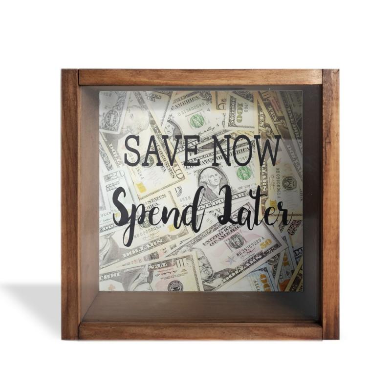 Camlı Ahşap Kumbara Save Now HK0655