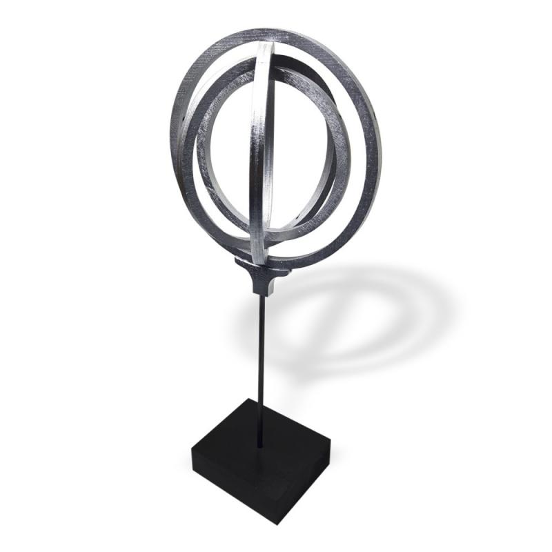 Elenor, Ahşap Halkalı Ayaklı Dünya Biblo Gümüş Renk "Orta Boy"