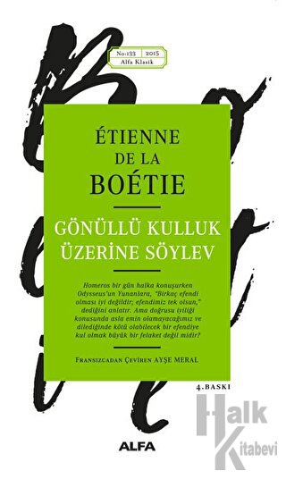 On altıncı yüzyılda yazılan, devlet egemenliği ve iktidarın meşruluğunu irdeleyen bu eser, on dokuzuncu yüzyıl toplumsal hareketlerine yön vermekle kalmayıp Tolstoy gibi dönemin anarşist düşünürlerini de etkiledi. La Boétie’nin kısacık hayatına sığan bu kısa metinde, iktidar ilişkilerinin nasıl sürdürüldüğünü ve bu tahakküm karşısında direniş ve sivil itaatsizlik teorilerinin nasıl hayata geçirilebileceğini görüyoruz.