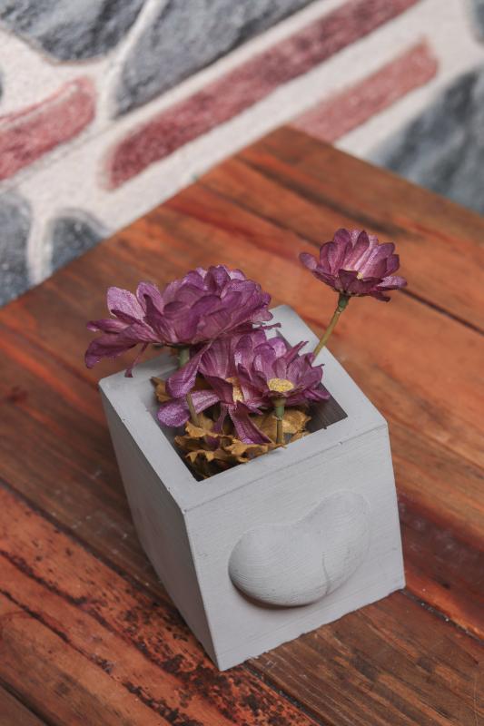 HK Dekor Kalp Motifli Kare Beton Saksı