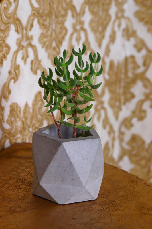 Üçgen desenli silindir beton saksılarla içinde şık bitkiler yetiştirebilirsiniz