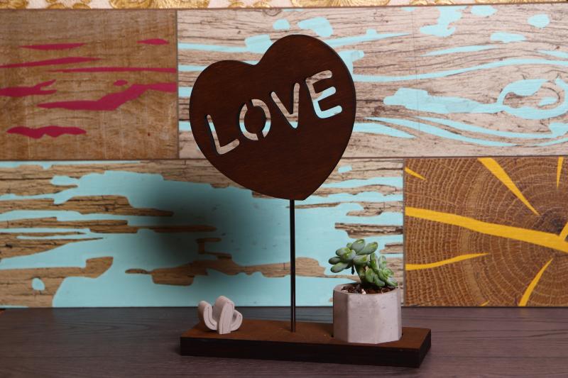 HK Dekor Love Standlı Beton Saksı. Love yazılı ahşap stand ve beton saksılarla masalarınızı güzelleştirebilirsiniz. 200X80X270mm