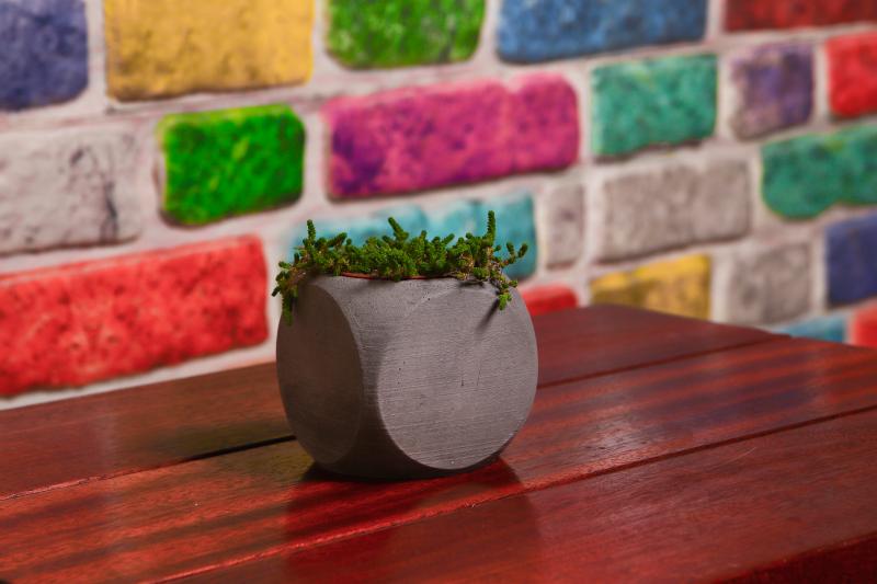 Kare yuvarlak desenli beton saksı sukulent ve kaktüsler için çok şık bir görüntü katacak masalarınıza.