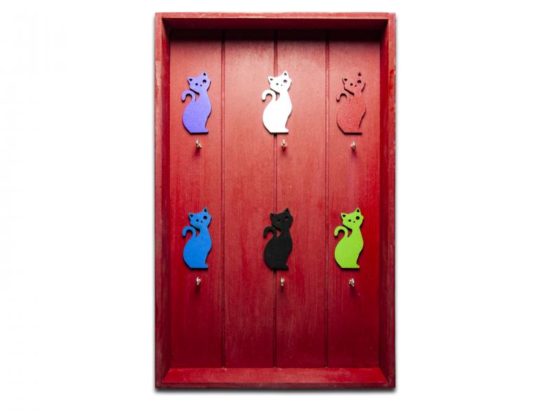 Kedi Figürlü 6'Lı Anahtarlık Kutusu, Kırmızı
