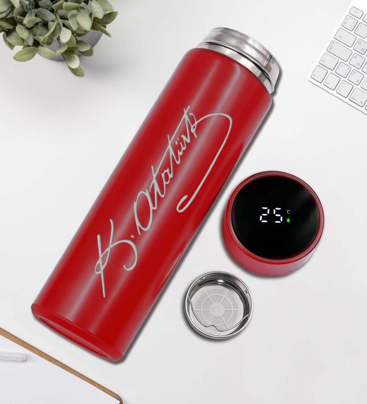 - Kırmızı Atatürk İmzalı Dereceli Termos