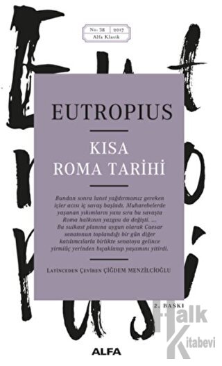 İS 4. yüzyılda yaşamış ünlü tarihçi Eutropius, İmparator Valens’in isteği üzerine Roma tarihini satır satır özetleyen bir eser kaleme alır. Kısa Roma Tarihi adıyla İmparator’a sunup ölümsüzleştirdiği bu eserinde amacı, Roma’nın efsanevi kuruluşunun miladı sayılan İÖ 753 yılından, İmparator Iovianus’un hayata gözlerini yumduğu İS 364 yılına kadar geçen yaklaşık bin yıllık sürede gerçekleşen dönüm noktası niteliğindeki belli başlı tarihi olayları okuyucusunun gözünde yeniden canlandırmaktır. Bu uğurda ne savaşların uğultusu yıldırır onu ne de sarayların entrikaları. Savaşlar kadar barış dönemlerinin hikâyesini de anlatır dili döndüğünce. Sonra kralların, devlet adamlarının ve imparatorların hayatlarına dair anekdotlarla süsler eserini ve Roma’nın kurucusu Romulus’tan başlayıp Caesar’ın katline, oradan da imparatorlar devrine uzanan olaylar zincirini kronolojik sıraya dikkat ederek ustalıkla örer. Üstelik yalın bir anlatımla kaleme aldığı elinizdeki eser sayesinde Roma edebiyatının seçkin eserleri arasına da adını yazdırmayı başarır.85