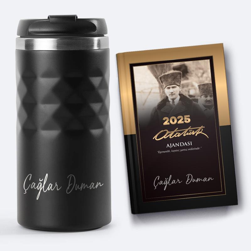 Kişiye Özel Siyah Spor Paslanmaz Çelik Termos 300 ml ve 2025 Ajanda - Çankaya