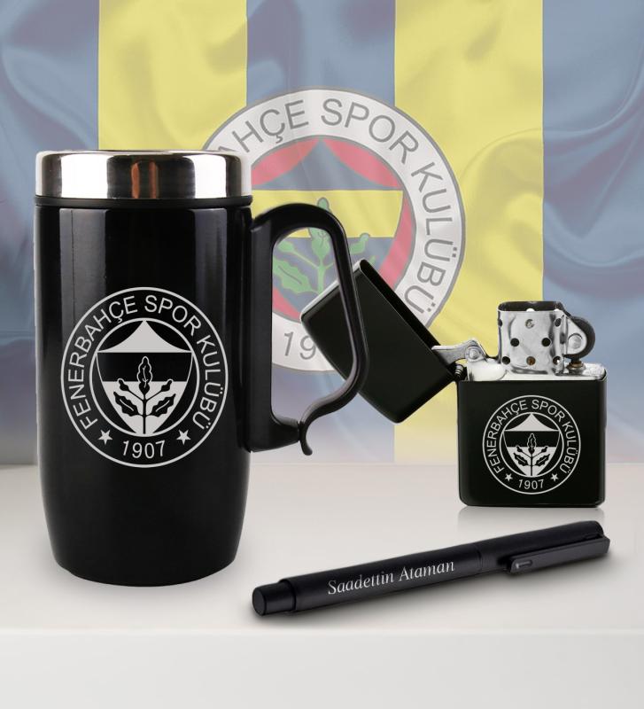 Kişiye Özel Taraftar Seti - Termos Kupa Bardak - Benzinli Çakmak - Metal Roller Kalem - Fenerbahçe