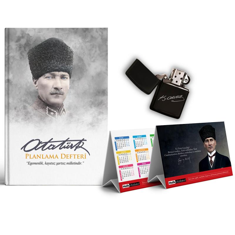 Komutan Süresiz Planlama Defteri ve Benzinli Çakmak Piramit Takvim Seti