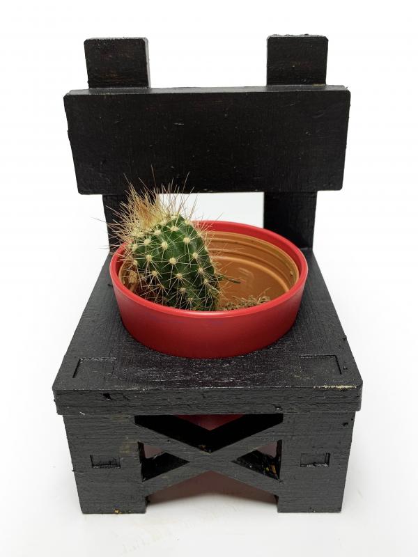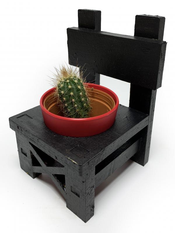Lora Sandalye Çiçeklik, Siyah. Saksı ve Kaktüs Fiyata Dahil Değildir.