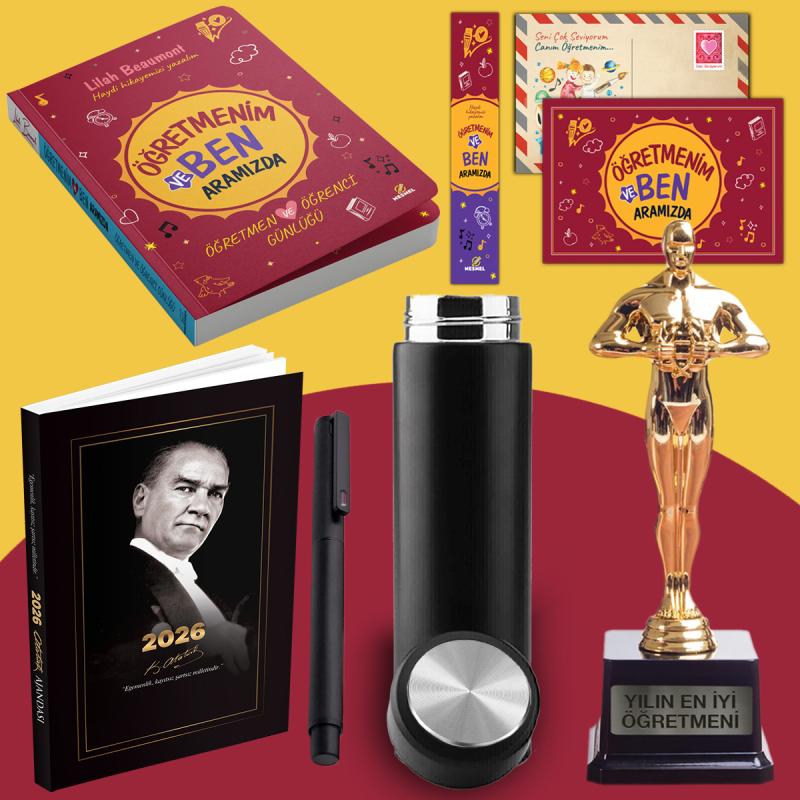 Öğretmenim ve Ben Aramızda - Oscar Heykeli - Termos - Gazi Paşa 2026 Atatürk Ajandası ve Roller Kalem