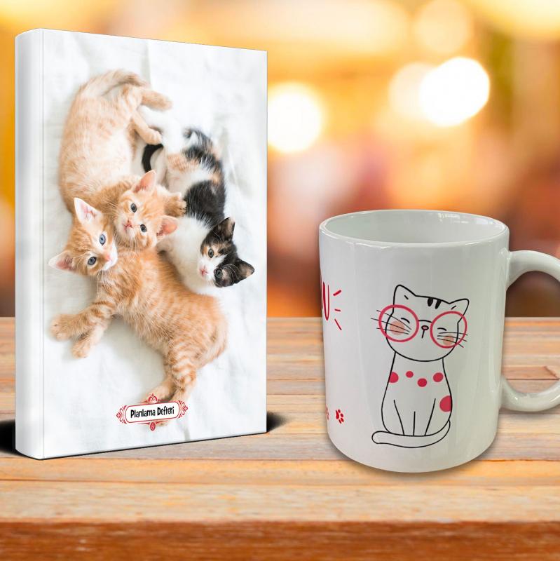 Oyuncu Kedi Ajanda Sevimli Kedi Kupa Seti