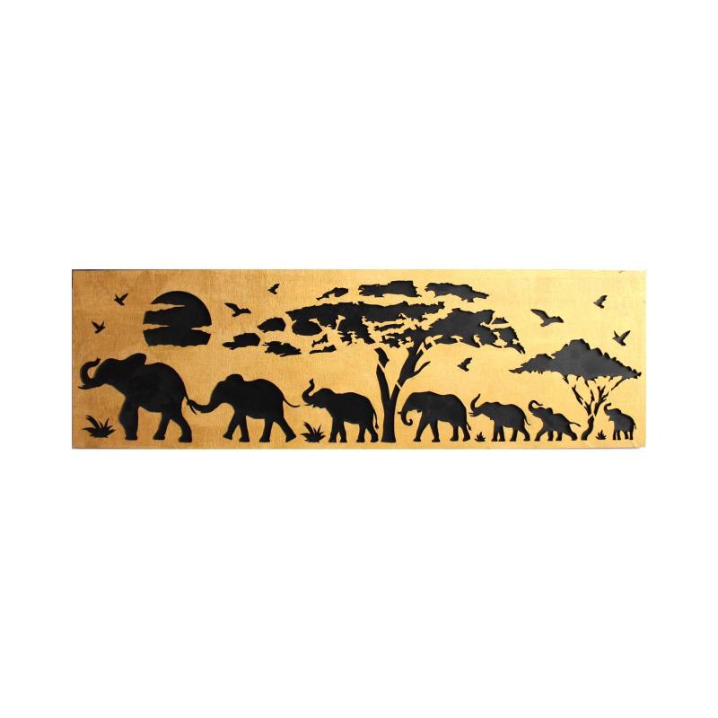 Pirela Altın Varak Ahşap 7'li Oyma Fil Tablosu HK0955-AV
