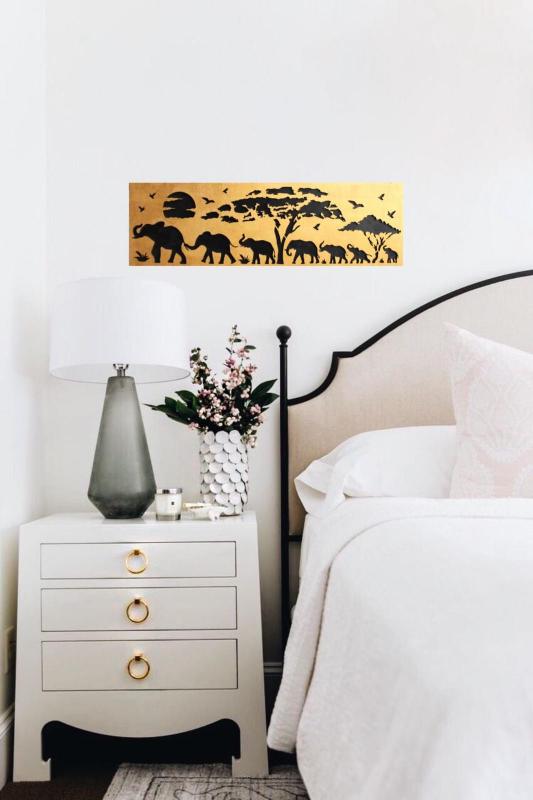 Pirela Altın Varak Ahşap 7'li Oyma Fil TablosuHK0955-AV