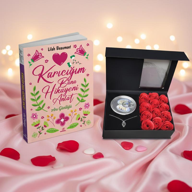 Sevgililer Gününe Özel İnci Kolyeli Gül Kutusu ve Karıcığım Bana Hikayeni Anlat