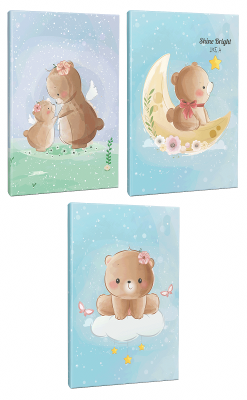 Sevimli Ayıcıklar 3lü 64 Sayfa Çizgili Okul Defteri Seti -2
