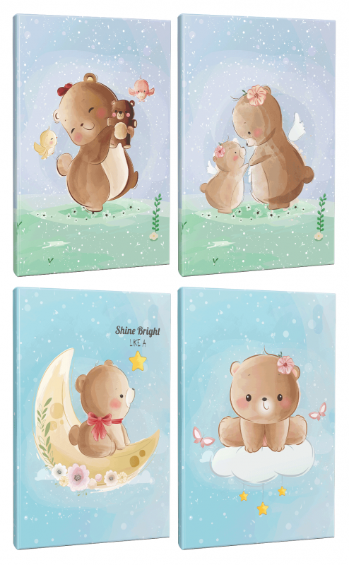Sevimli Ayıcıklar 4lü 64 Sayfa Çizgili Okul Defteri Seti -1