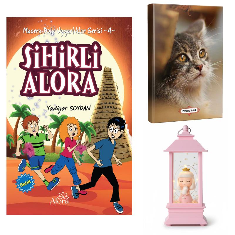 - Sihirli Alora - Minik Kedi Planlama Defteri ve Kedili Prenses Fener Tipi Işıklı Kar Küresi