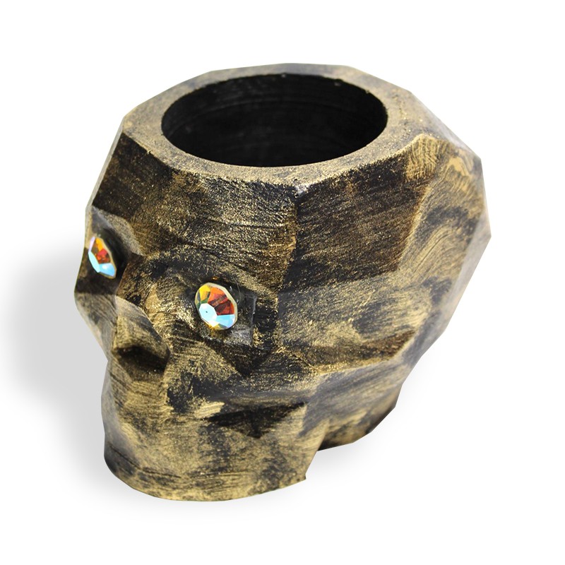 Siyah Üstü Altın Varak Kurukafa Beton Saksı, Kristal Gözlü