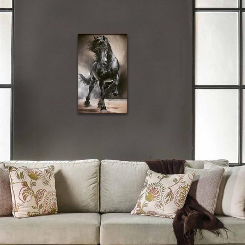| Vera Siyah Koşan At Baskılı Ahşap Tablo Model 1 |