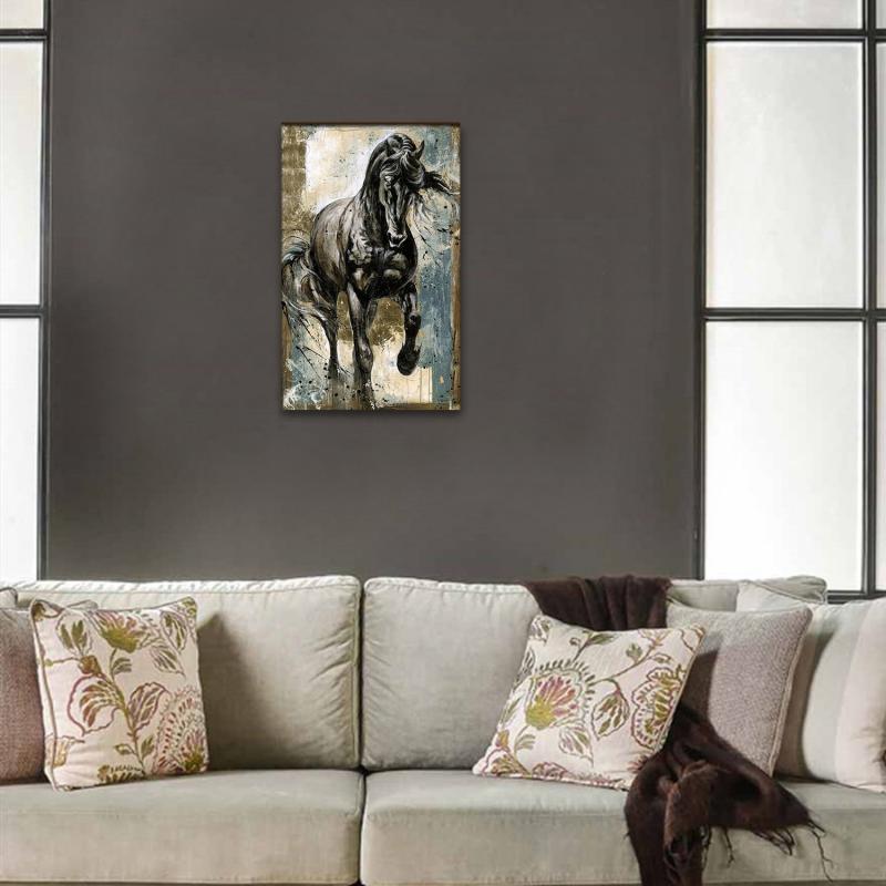 | Vera Siyah Koşan At Baskılı Ahşap Tablo Model 2 |