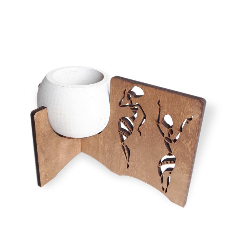 Zenci Dansçılar Figürlü Beton Saksılı Ahşap Stand HK1670