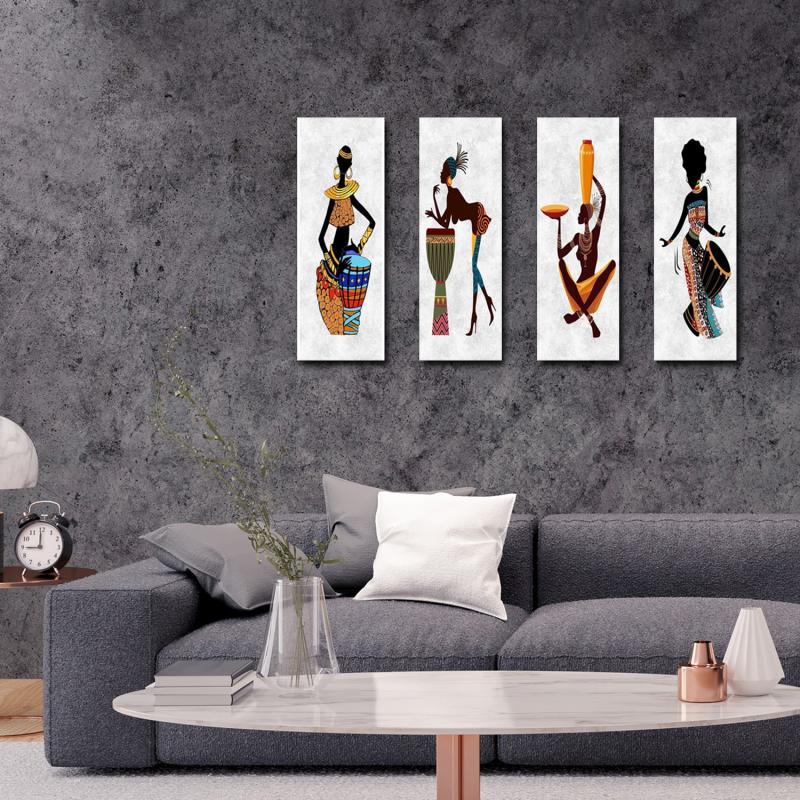 Zenci Kadın Baskılı 4'lü Ahşap Duvar Tablosu Büyük Boy